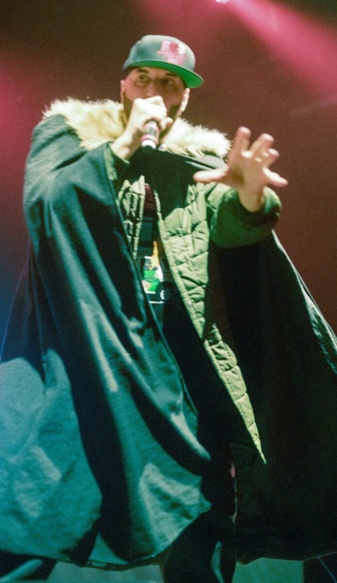 R.A. the Rugged Man raised the intensity with fast flows and high energy. He moved across the stage and kept the crowd engaged from start to finish.